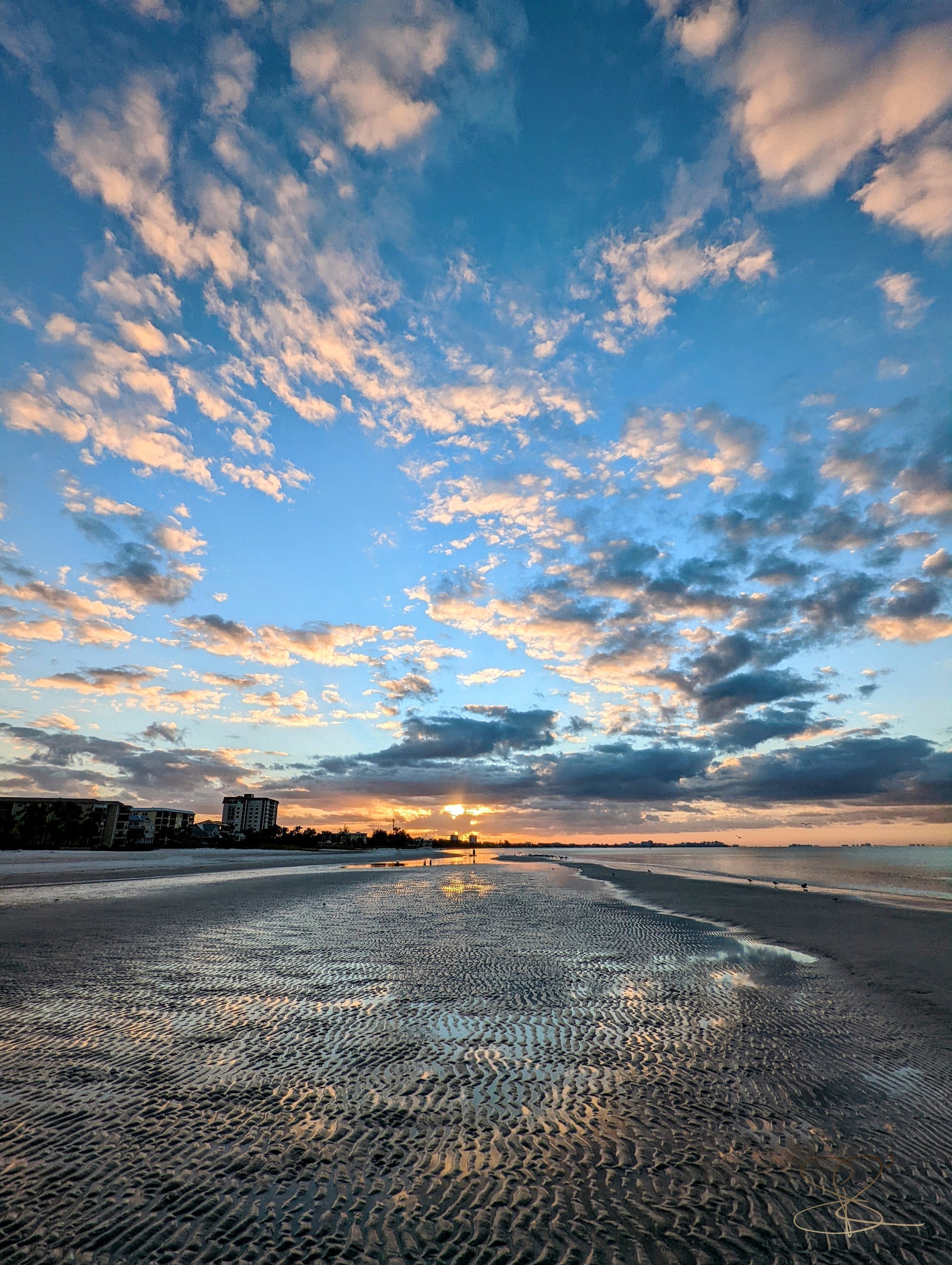 Sunrise and ripples... This is a scene I've witnessed quite often, however, this day it just seemed a bit more magical!!! The clouds were moving fast but the tide was in slow motion, inviting the sun to dry the valleys... 🩵🩶💙